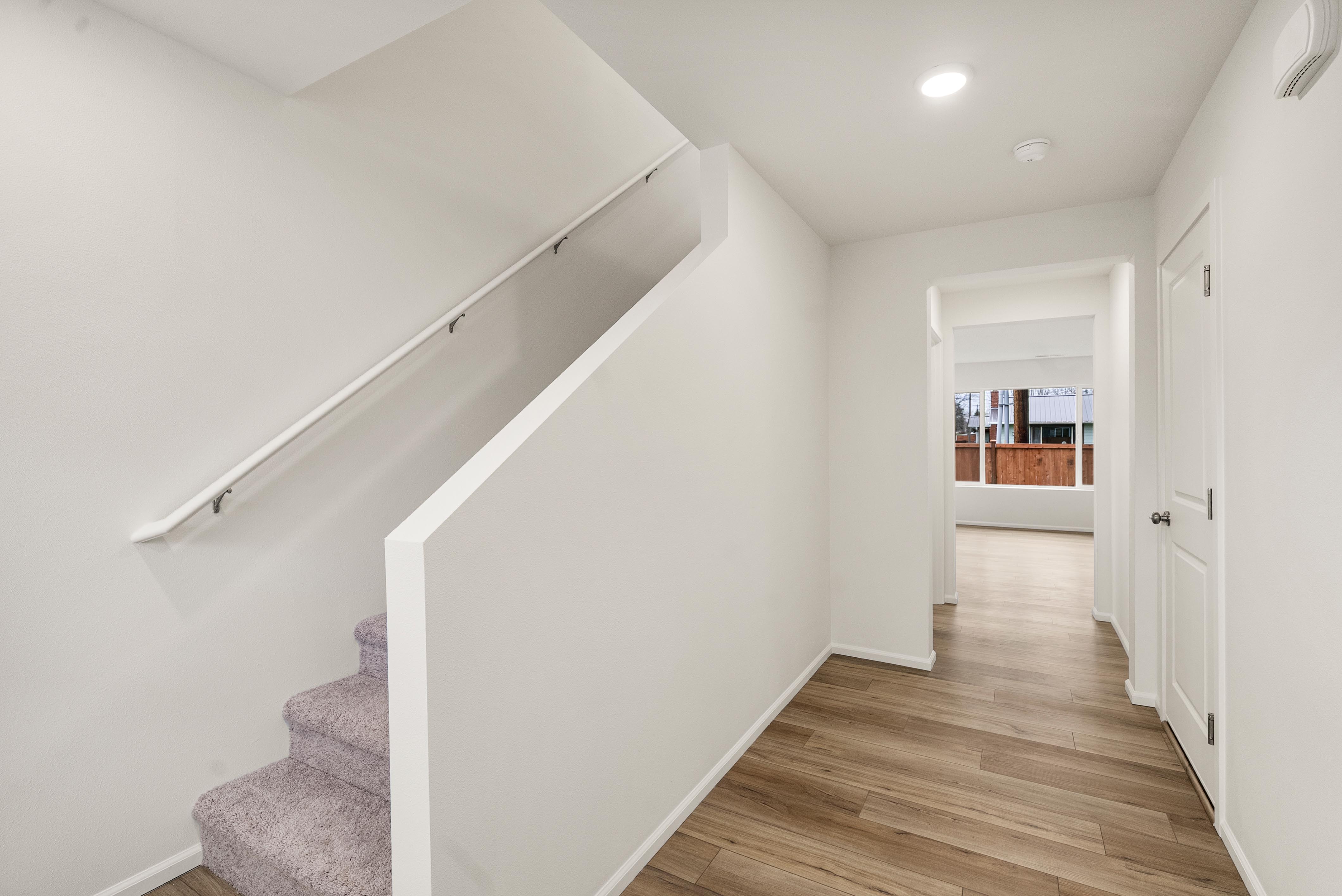 Additional included features like two-bay garages, 9’ ceilings on the main floor, luxury vinyl plank flooring, Ecobee® Premium Pro thermostats, and Schlage® electronic front door locks elevate everyday living. Select homesites also offer optional covered patios and open railings for added comfort and style.